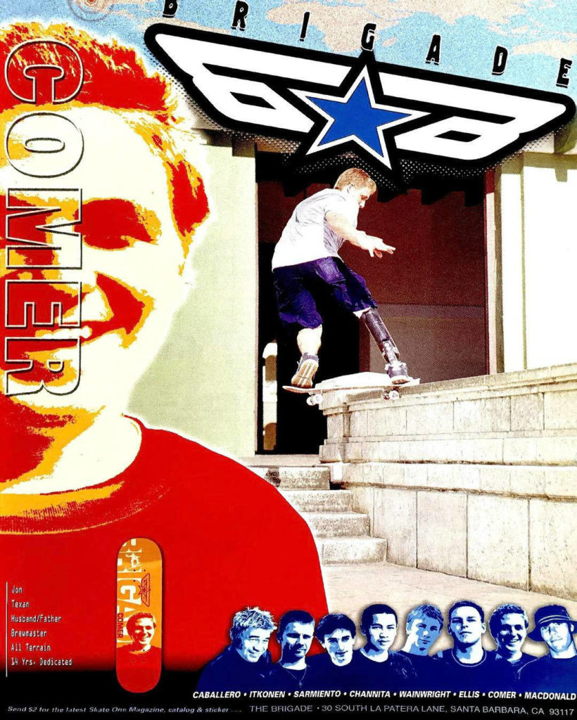 Das Foto oben bzw. unten stammt von einer Powell Werbung. Comer war Pro Fahrer und hatte sein eigenes Pro Model / Signature Board bei der Company. Seine Videoparts sind legendär.