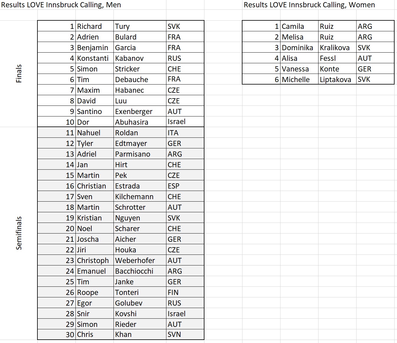 zurück zum ArtikelLove Innsbruck 2019 – Contest Results und Videohighlights. 20. Dezember 2019 22:55 - Johannes Gausepohl
