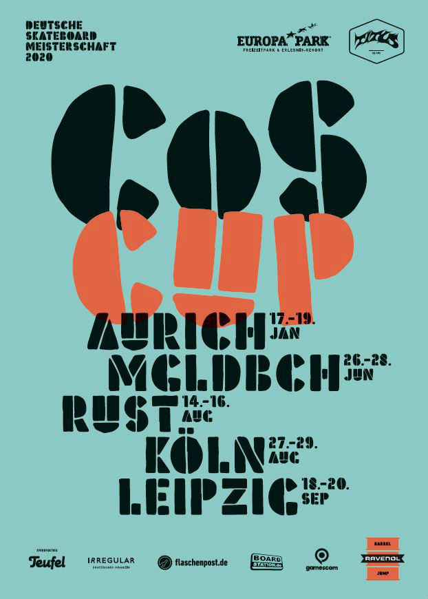 Insgesamt somit beste Voraussetzungen für einen gelungenen Start ins neue COS Cup-Jahr. Dabei wird es nicht nur darum gehen die besten Nordlichter auszumachen, sondern auch um die ersten Starterplätze für die 23. Deutsche Skateboard-Meisterschaft! Gefragt sind 2020 wieder alle drei Divisions, d. h. Pros – gesponserte und/oder über ihren Verein angemeldete Fahrer, Seniors aka Masters, die mindestens ihr 30. Lebensjahr vollendet haben, sowie die Girls.