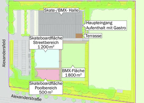 Während der BMX Teil von den „Radfahrern“ geplant wird, wird der Pool- und Street Bereich von Skateboardern designt werden. Die Pools werden zum Beispiel von den Omsa Leuten umgesetzt werden. Und die Skateboard AG mit Michael Meibers-Hinrichs kümmert sich um einen guten Street Bereich.