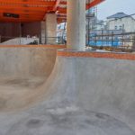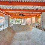 2020, dieses Jahr, soll die Fertigstellung anstehen. Der Rohbau steht schon seit vielen Monaten und die Bowls im ersten Stock sind gegossen und haben ihr finales Coping bereits erhalten. Der Street Skatepark befindet sich noch in der Planung und kann erst gebaut werden, wenn das Gebäude von allen Seiten geschlossen ist. Ein Streetbereich aus Holz und englisches Wetter vertragen sich in der Regel nicht so gut … .