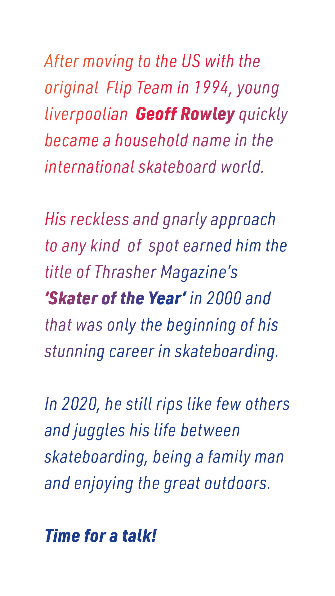 We Need To Talk – Live Interview am Sonntag: Thomas Gentsch chattet mit Geoff Rowley