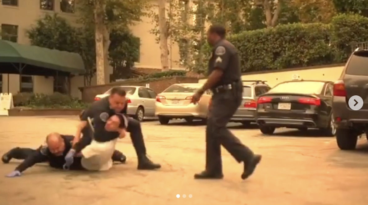 Polizeigewalt – Polizist streckt beim ausrollen Bein aus und ringt Darkstar Pro Ke’Chaud Johnson zu Boden