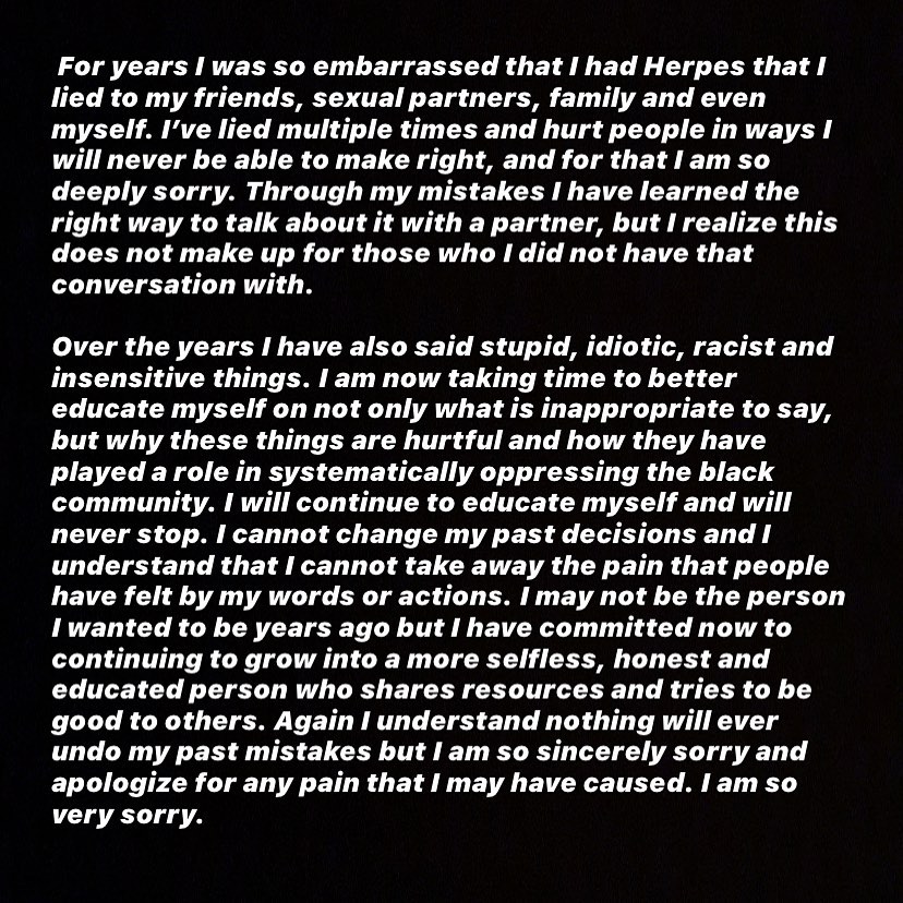 - Entschuldigung von Stuckey via Instagram (@johanstuckey)