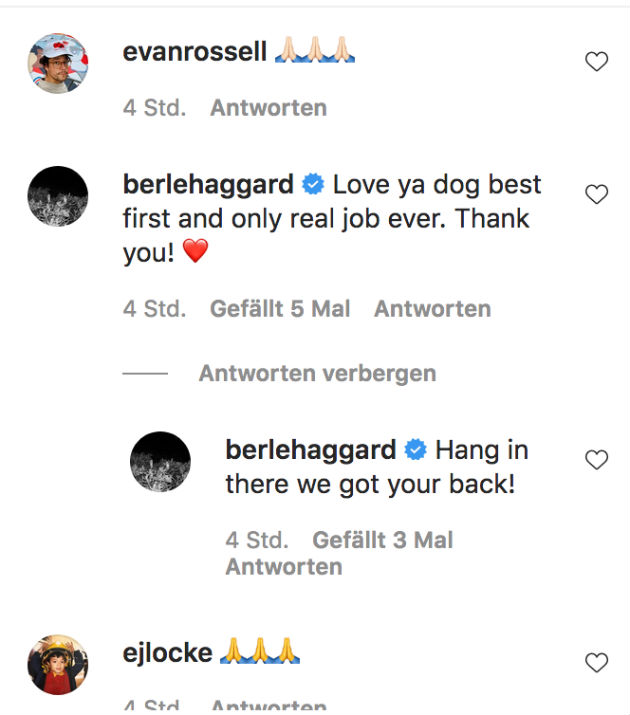 Unter dem Posting vom 1. August schreiben Fans seit heute Morgen Sätze wie „Ich denke an dich und deine Familie“, „wir senden dir Gebete“, „wir lieben dich Keith“:
