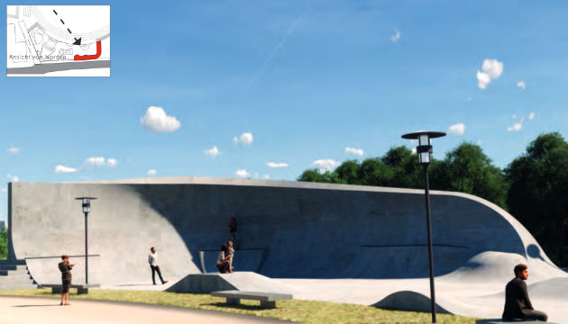 Zum Beispiel soll es eine Bowl-Area geben, ein tiefer Kidney Pool mit Überdachung und einen große Street Course. Der Streetbereich soll dann durch einen Snake Run an die Flow Area und die Miniramp angeschlossen werden. Mehr Informationen dazu weiter unten.