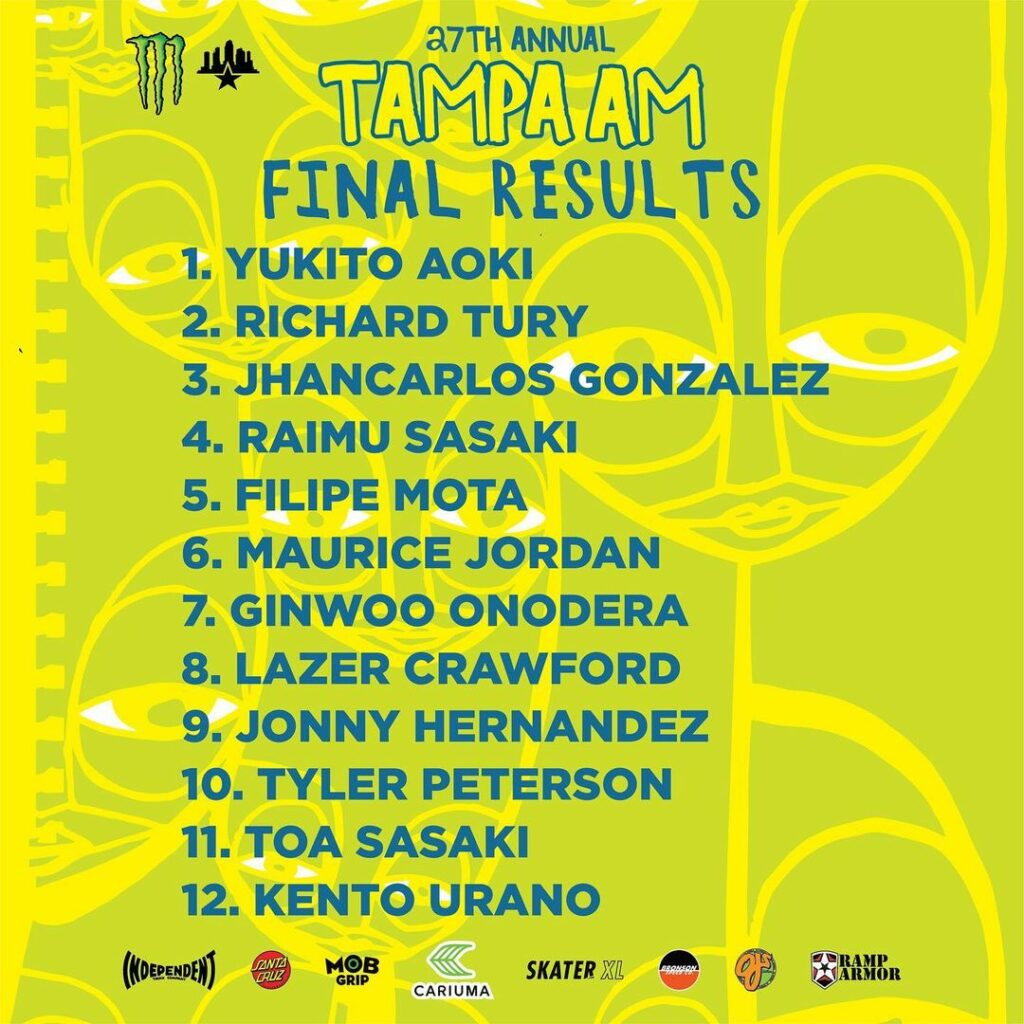 Japan geht im Skateboarding immer steiler: Yukito Aoki hat den berühmten Tampa Am Contest 2021 gewonnen. Hier die Results aus Florida mit dem Livestream Replay, dem Winning Run und Best Trick.
