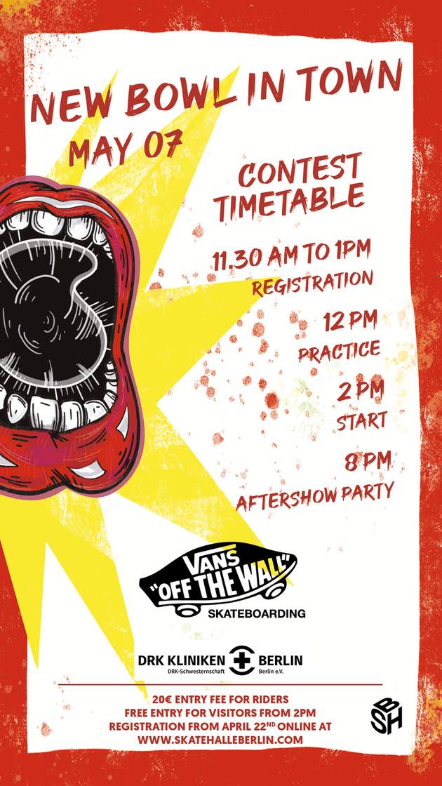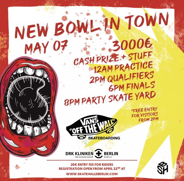 Am 7.5. wird in der Skatehalle Berlin der neue Bowl mit einem Contest eröffnet. Vans und das Team der Skatehalle laden alle ein, vorbeizuschauen. Der Eintritt ist kostenlos: