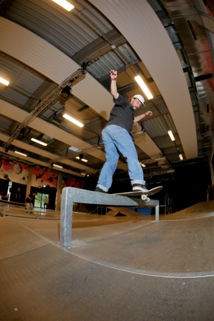 Nach den Finalrunden meldeten sich einige noch zum Best-Trick-Wettbewerb an, der an der Funbox ausgetragen wurde. Marcel Steinhage aus Lügde zeigte mit einem Heelflip aus dem Flat auf den Table den spektakulärsten Trick und gewann.