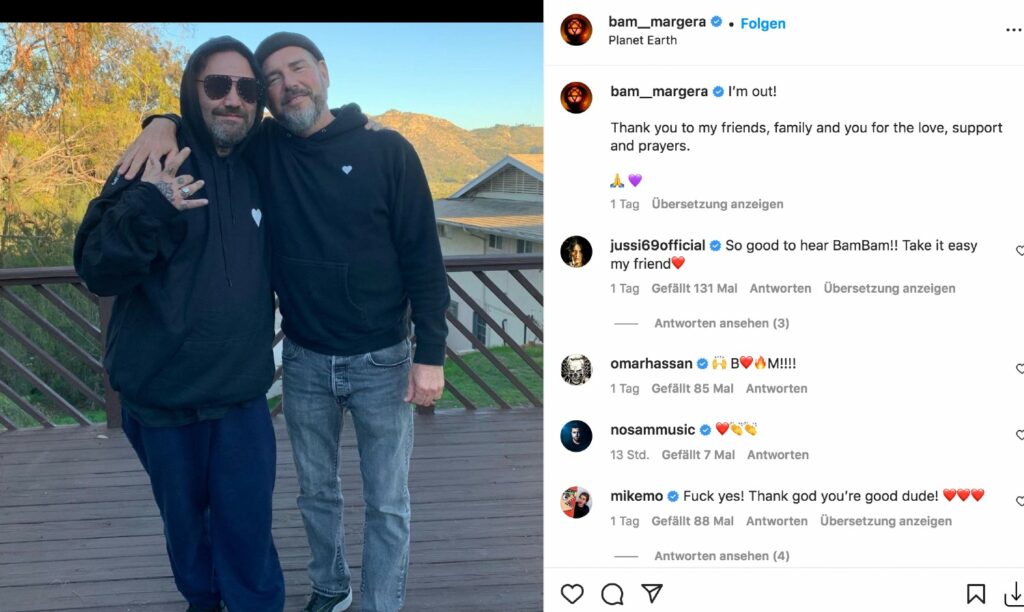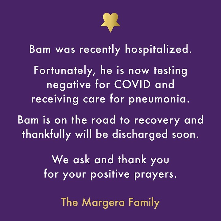 Glücklicherweise gab es am Wochenende Entwarnung, Bam postete dieses Foto in den sozialen Netzerken mit der Nachricht: Ich bin draußen.