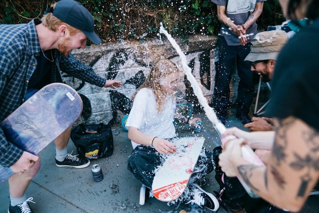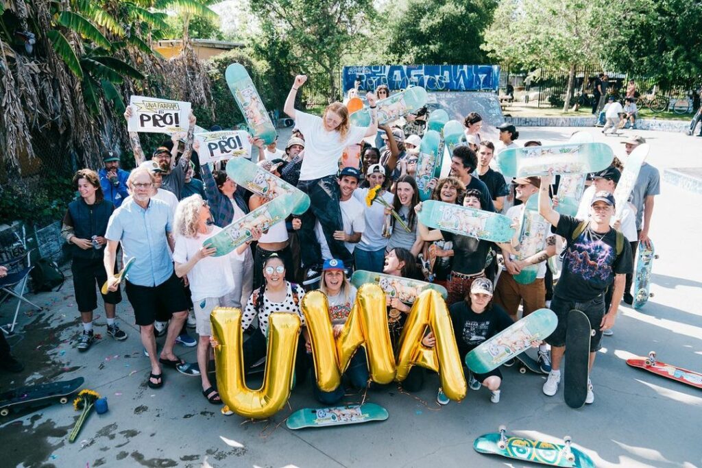 Una Farrar wurde am Wochenende von ihrem Teamkollegen und Familienmitgliedern überrascht: Die Gute ist nun Pro Fahrerin und hat damit ihr eigenes Board bekommen.