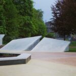 Designt wurde der Skatepark vom Planungsbüro LNDSKT (Link) und umgesetzt wurden die Pläne von Anker Skateboard Rampen (Link).