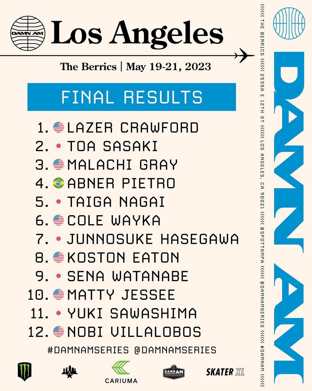 zurück zum ArtikelDamn Am Los Angeles 2023 – Results und Videohighlights. 23. Mai 2023 13:05 - Johannes Gausepohl