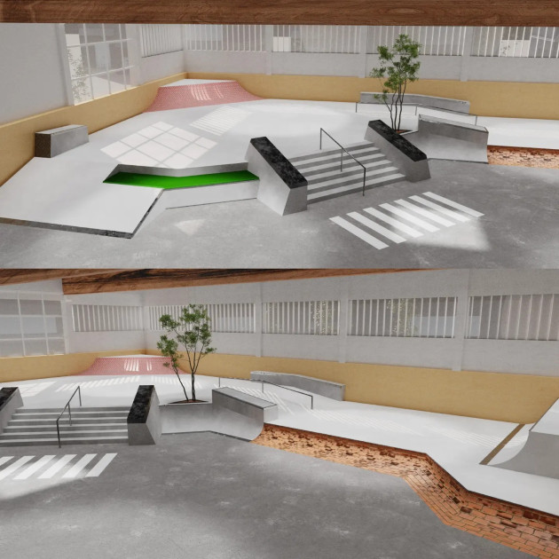 Wenn alles glatt geht, soll so die neue Skatehalle in der österreichischen Hauptstadt aussehen. Allerdings gibt der Vorstand zu bedenken, dass zum Beispiel die genauen Maße, Abstände, Proportionen, Radien usw. erst im Rahmen des Umsetzungsplans festgelegt werden können.