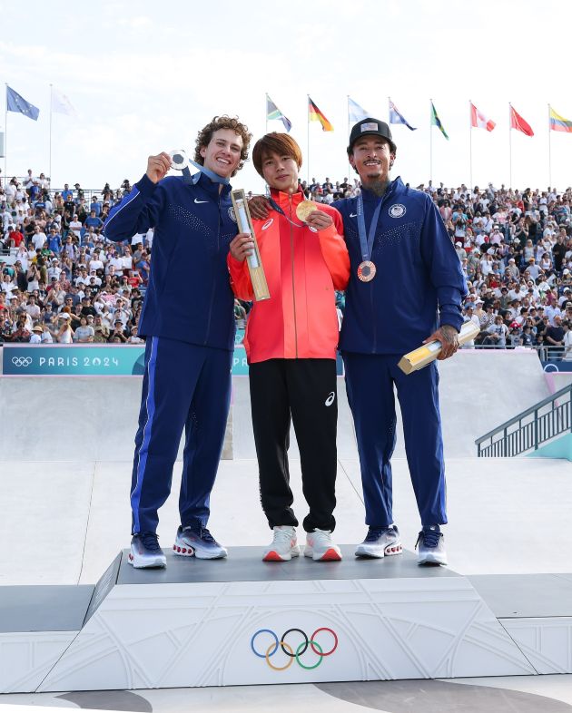 Auf dem zweiten Platz und Silber holte sich der Amerikaner Jagger Eaton, der in Tokio 2020 Bronze gewann – und bis zu Yutos letztem Trickübersprung auf Goldposition lag – und die Bronzemedaille ging an die amerikanische Legende Nyjah Huston, der sich selbst gegenüber seinem vorherigen 7. Platz im Jahr 2020 verbesserte Tokio.