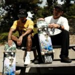 Nyjah und Mark posierten entsprechend für die Ankündigung auf einer Bank und präsentierten dabei sofort Marks neues Signature Board.