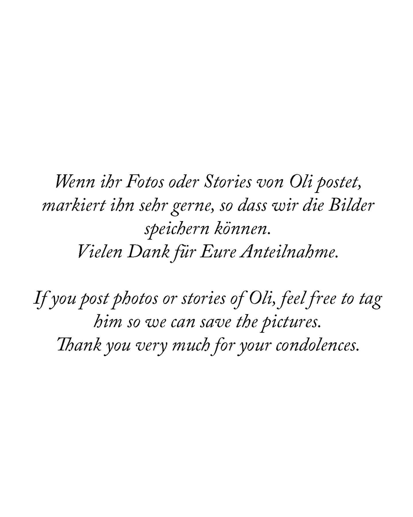 zurück zum ArtikelRIP – Oli Tielsch ist tot. 14. Oktober 2024 06:06 - Johannes Gausepohl Instagram @olitielsch