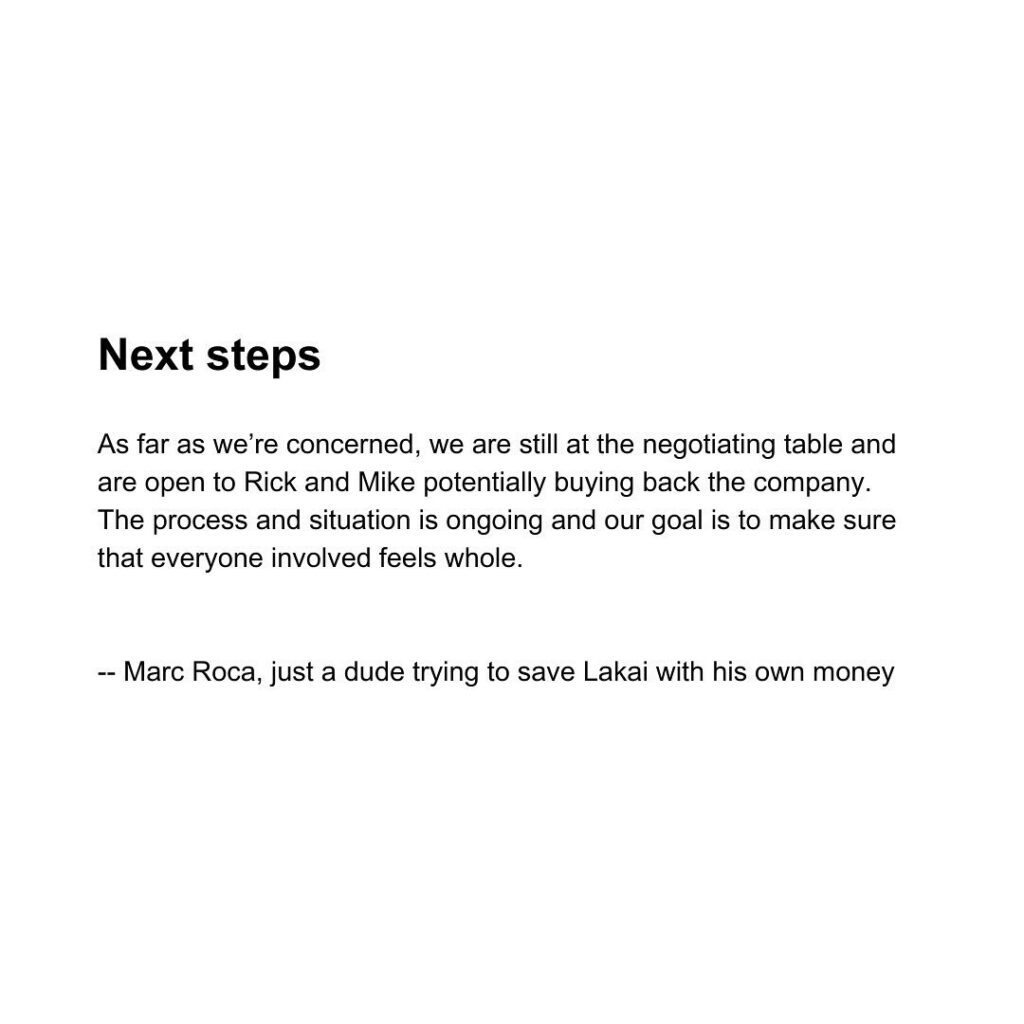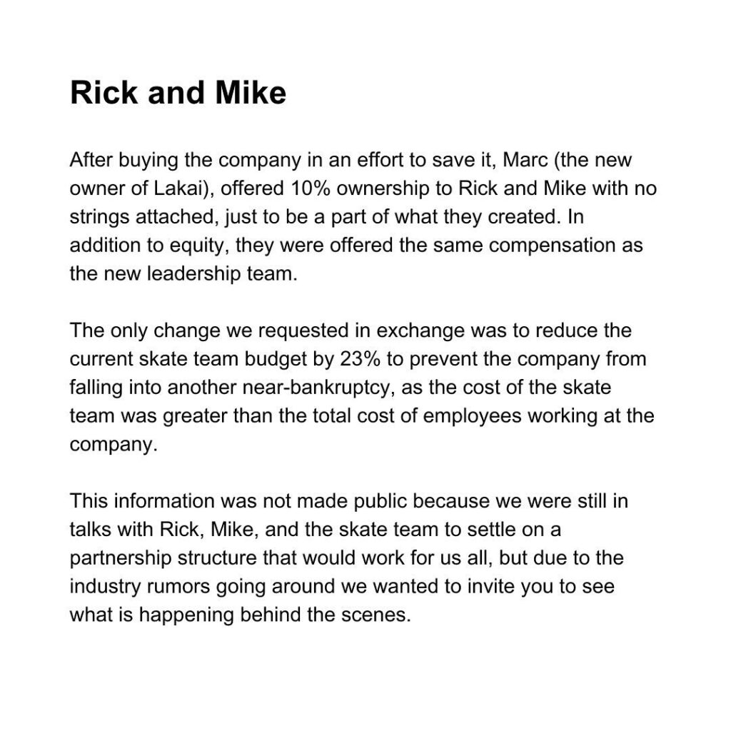 Rick Howard und Mike Carroll waren seit Jahren kein Teil mehr von Lakai. Die Investmentfirma bot den beiden Gründern eine 10% Beteiligung an.