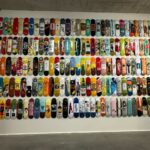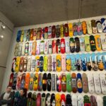 Wie die Fotos mehr als verdeutlichen, kann man die gesamte Geschichte von Chocolate Skateboards bewundern. Alle Boards der Company sind an den Wänden und den Vitrinen zu bestaunen. Neben den Holzbrettern werden auch limitierte Schuhe, Shirts und andere Dinge aus der 30jährigen Firmengeschichte präsentiert.