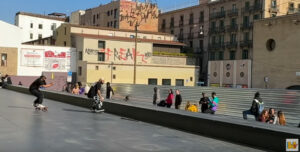 Wie Winkle TV auf YouTube in diesem Video deutlich zeigen, wurde der komplette Teil der Mini Treppe mit Blechen eingezäunt. Unter den Augen von Wade DesArmo und Flo Marfaing wurde sogar der hintere Teil der Treppe durch die Bleche verspeert und ist nicht mehr skatebar.