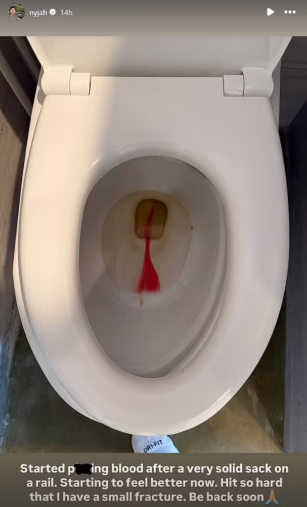 Nyjah kann hart einstecken, keine Frage, aber innere Blutungen sind kein Spaß noch eine Verletzung, die man so einfach wegsteckt. Da er sich „etwas“ gebrochen hat, nahmen in den letzten 24 Stunden einige Fans an, dass er sich seinen Penis gebrochen hat.