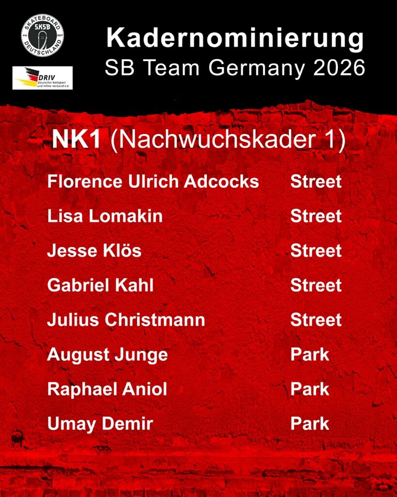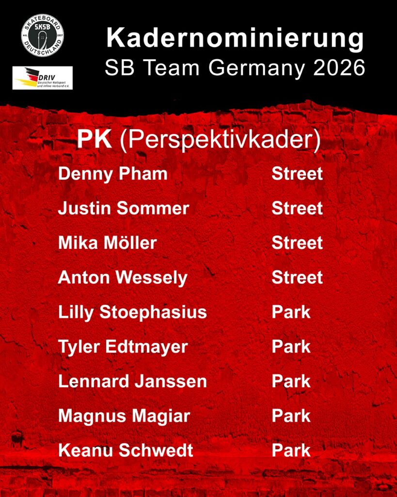 Die deutsche Skateboard Kommission hat den Kader für Team Deutschland im Skateboarding aufgestellt.