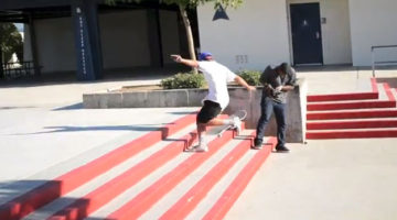 Paul "H$PAUL" Natalizia versucht einen Benihana die El Toro 20er Treppe runter. Sieht alles gut aus, nur das weiterfahren ist ein kleines Problemchen, schade. Dafür ist der 50-50 Grind, der Switch 180 und der Firecracker gestanden.