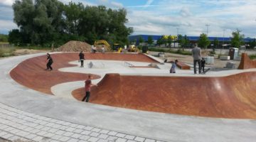 Betonlandschaften und Camp Ramps sind gerade mitten in den Bauarbeiten für den neuen Skatepark von Lohhof Unterschleissheim. Wie man an den