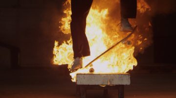 Diamond Footwear Teamfahrer Brandon Biebel hat mit seinen Buddys Marc Johnson und Guy Mariano seine Skatehalle in Brand gesteckt. Natürlich nicht die ganze Halle, aber ein paar Obstacles … sieht ja echt stylisch aus.