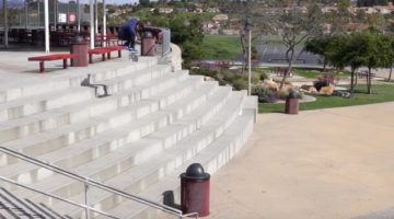Chris Joslin hat an der berühmten El Toro Treppe an der gleichnamigen Schule in Kalifornien einen 360 Kickflip gestanden. Mit dem Banger