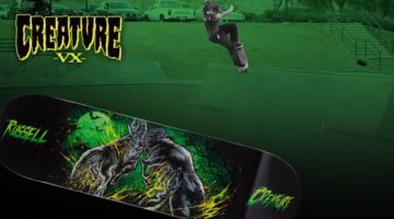 Chris Russell surft auf Beton unter Brücken und Backyards in Süd Kalifornien. Der schenkt sich nix, ganz im Style von Creature Skateboards …