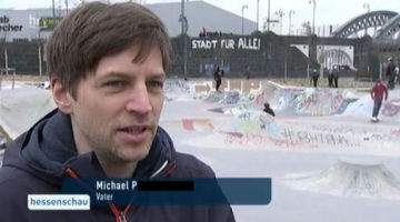 Zum ersten Mal hat es ein Fernsehteam geschafft, einen der Väter von Frankfurt an dem Hafen Skatepark vor die Kamera zu kriegen. Sein Name, Michael P. .Ihm ist es scheinbar egal, dass sich Skateboarder durch einen Zusammenstoß mit seinem kleinen Sohn verletzen könnten. Dass Kinder unter 8 Jahren nicht in dem Skatepark "spielen" dürfen, stört […]