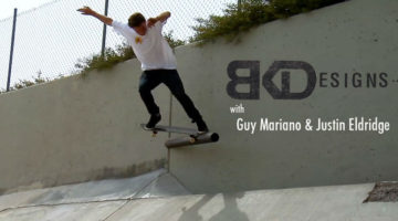 BK Designs, die schon die Berrics und Girl TF gebaut haben, installierten für Guy Mariano und Justin Eldridge diesen Pole an einer Wand …