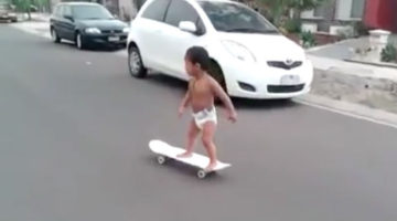 Das Video, was am Wochenende die Runde gemacht hat, der 2 Jahre alte Skateboarder in Windeln: