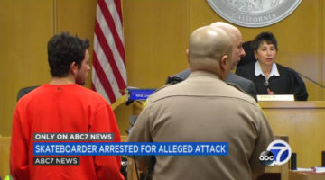 Pro Fahrer Jesse Vieira bleibt weiter wegen schweren Angriffs mit einer tödlichen Waffe (Skateboard) auf einen Security Guard in San Francisco im Gefängnis (News). Diese Videoaufnahme
