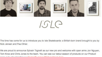 Die Engländer Paul Shier und Nick Jensen habenvor Monaten Blueprint Skateboards verlassen. Jetzt haben die beiden die Firma "Isle Skateboards"gegründet. Zum Start hat die neue Company schon vier Teamfahrer plus Nick und Paul am Start:
