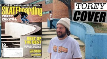 Manny und Thank You Skateboards Pro und Teilhaber Torey Pudwill besuchen kurz die hüfthohe Ledge vom TransWorld Cover.