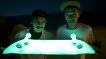 Ein Skateboard das in der Dunkelheit leuchtet! Vinnie Banh und Carlos Lastra testen die Planke … Ein Skateboard das in der Dunkelheit leuchtet!